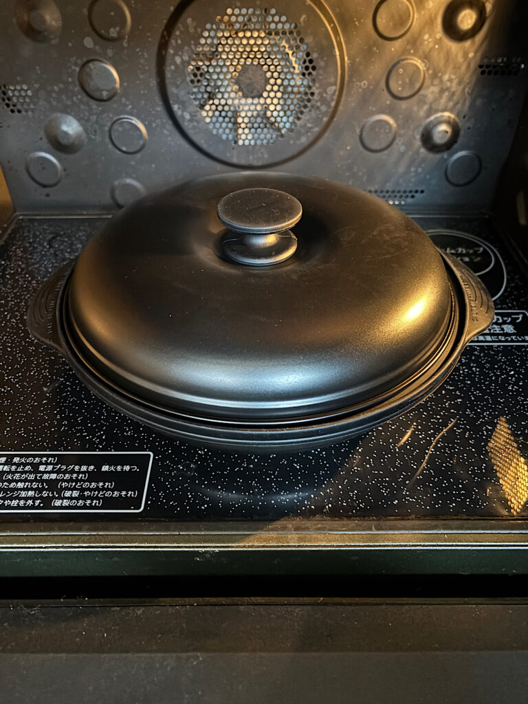 中身を入れたらフタをして電子レンジへ。