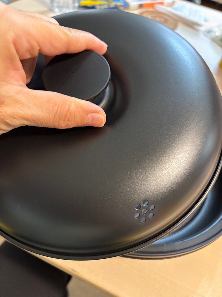 フタや本体の取っ手がシリコーンなのが熱くならずに鍋つかみ無して持てるのが良い。