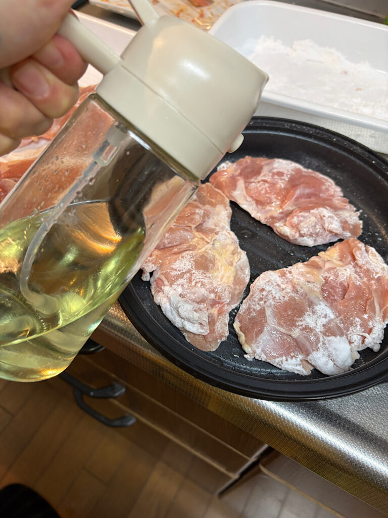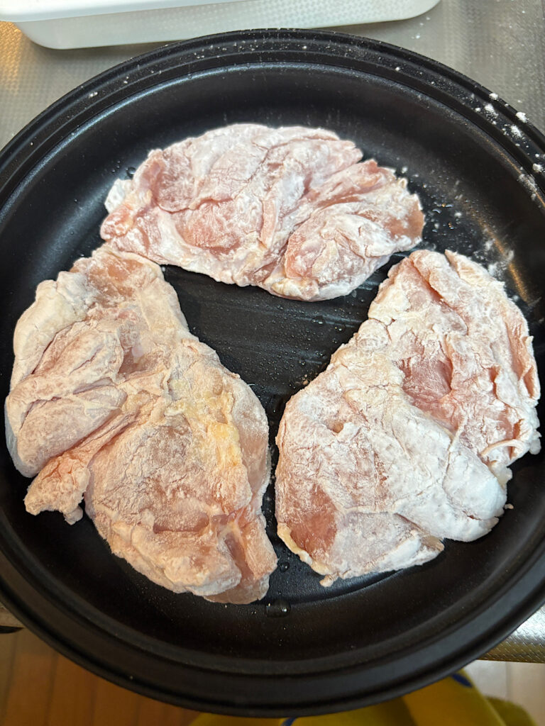 今回は片栗粉をつけて焼いてみました。