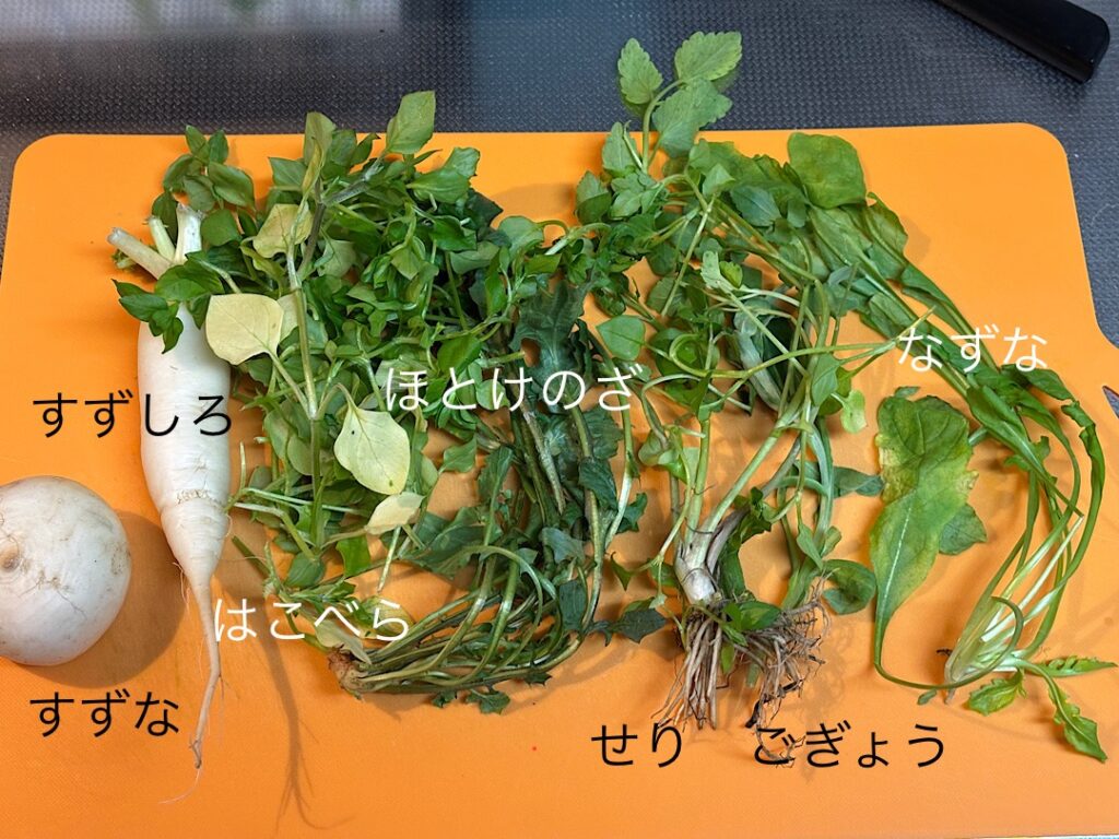 日本では正月で食べすぎた胃を休めるためと言われてますが、中国では健康と立身出世を願うものでそれが合わさり、それぞれの草に「競り勝つ」「汚れを払う」など縁起が良いとされています。