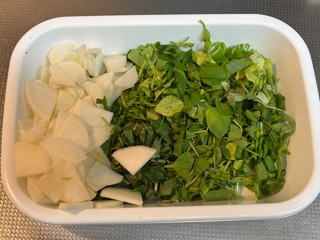 すずなとすずしろは皮を向き薄く食べやすいサイズにカット。