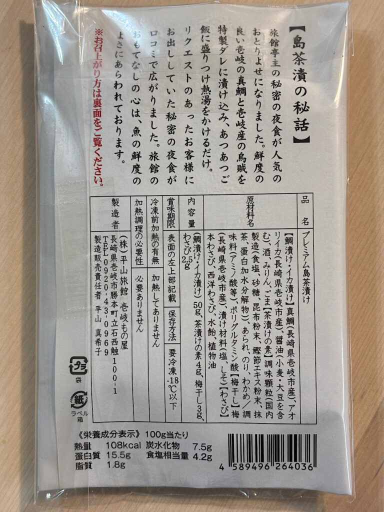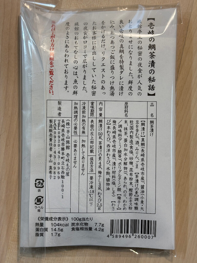 鯛茶漬けと島茶漬けのアソートセットを購入したので鯛茶漬けも紹介します。