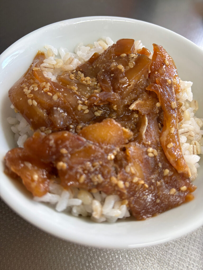 試しにお湯をかけずに身だけ食べてみましたが、漬けなのに濃くもなくいい塩梅の浸かり方。