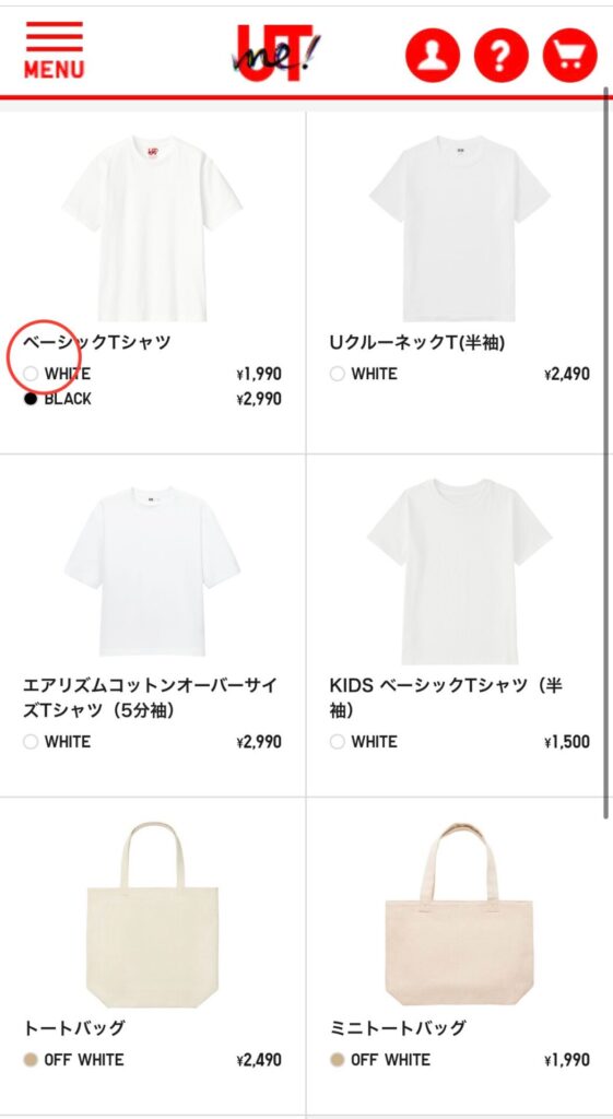 どちらを選んでももう一度確認のような画面が出てくるので、白Tか黒Tか選びます。
