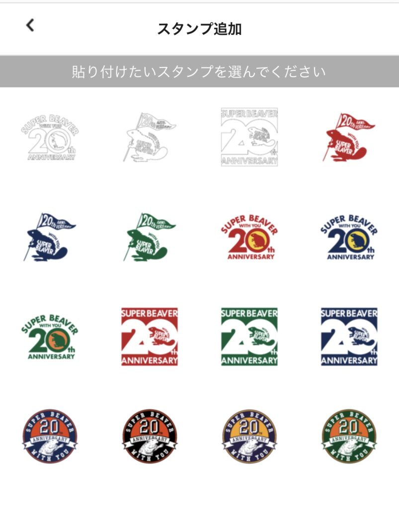 スタンプの中からSUPER BEAVERを選択。