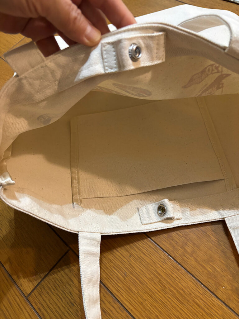 内側に小さいポケットとボタンも付いています。